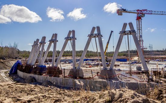 На стройплощадке энергоблока №3 ЛАЭС началось устройство колоннады башенной испарительной градирни