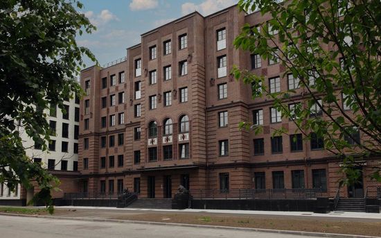 Несмотря на неизбежную в этом случае архитектурную эклектику, здание предстает стилистически очень цельным. Эффект достигается, в том числе, благодаря одноцветному бетонному клинкеру на фасаде, что придает строению респектабельность и устойчивость. Технологически клинкерная кладка является наружным слоем навесного фасада, однако при ее устройстве использовано множество приемов, которые в таком разнообразии одновременно встречаются нечасто: утолщенный клинкер, рустирование, пояса, таблероны и другие. Красное кирпичное здание выглядит лаконично и дорого, но при этом уживается с разнородными соседями — массивной «сталинкой», пятиэтажкой и даже с ЖК Amo напротив, который в свою очередь перекликается со ар-деко орнаментом фасадов.