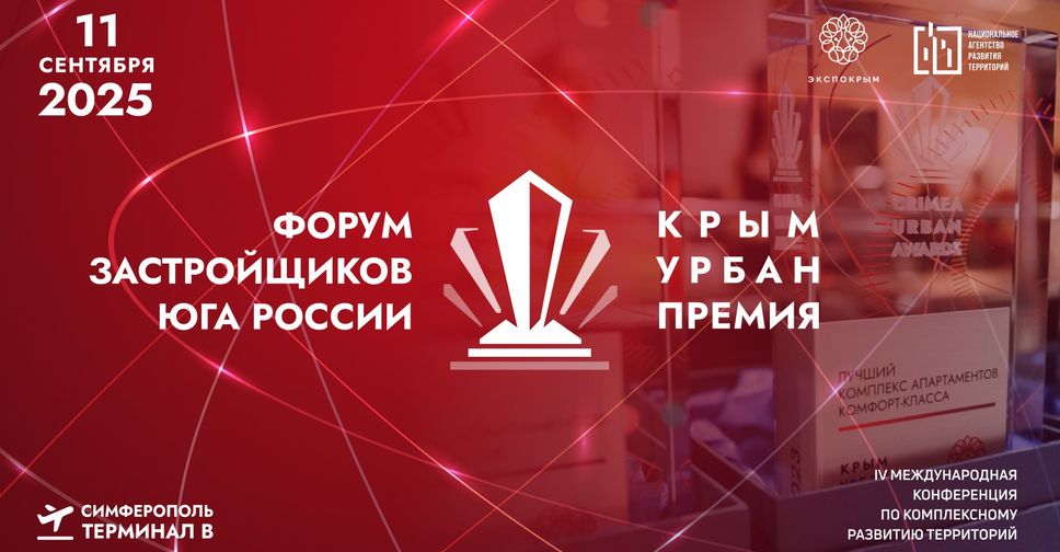 10-11 сентября в Крыму пройдут Форум застройщиков Юга России и церемония вручения премии «Крым Урбан Премия 2025». События состоятся в рамках «Крым Урбан Форум» — ключевой отраслевой площадки для тех, кто создает новый облик полуострова. Организаторами выступают: «ЭКСПОКРЫМ» и АНО «Национальное агентство развития территорий» (НАРТ). Титульный партнёр — ЖК «Юсуповский» — уникальный масштабный проект бизнес-класса на Южном берегу Крыма в Мисхорском парке. Стратегический партнер — ГК «Развитие», входит в ТОП-20 застройщиков России по данным ЕРЗ. Генеральный партнер выставочной экспозиции: Карачаровский механический завод – производитель лифтов, установленных в МГУ, Библиотеке им. Ленина, во многих жилых и государственных объектах. Свои объекты на экспозиции представят ГК «Расцветай» (Вилла Маяк) и «Просторы Крыма», ЖК «Юсуповский» и ГК «Развитие».