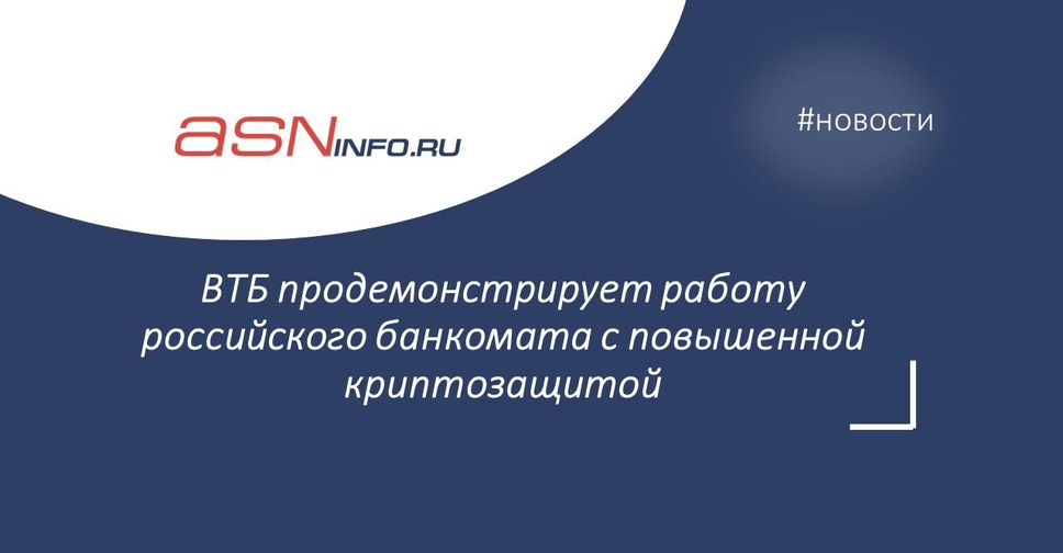 ВТБ продемонстрирует работу российского банкомата с повышенной криптозащитой