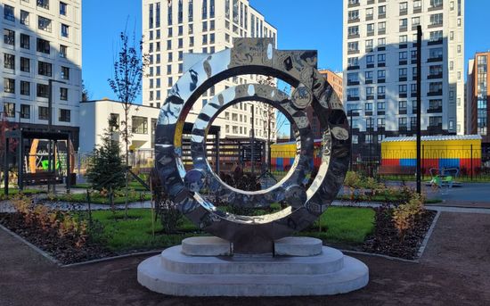 На территории жилого комплекса «Тайм Сквер», построенного холдингом «РСТИ» на Планерной улице в Приморском районе Санкт-Петербурга, установлен арт-объект «Машина времени».