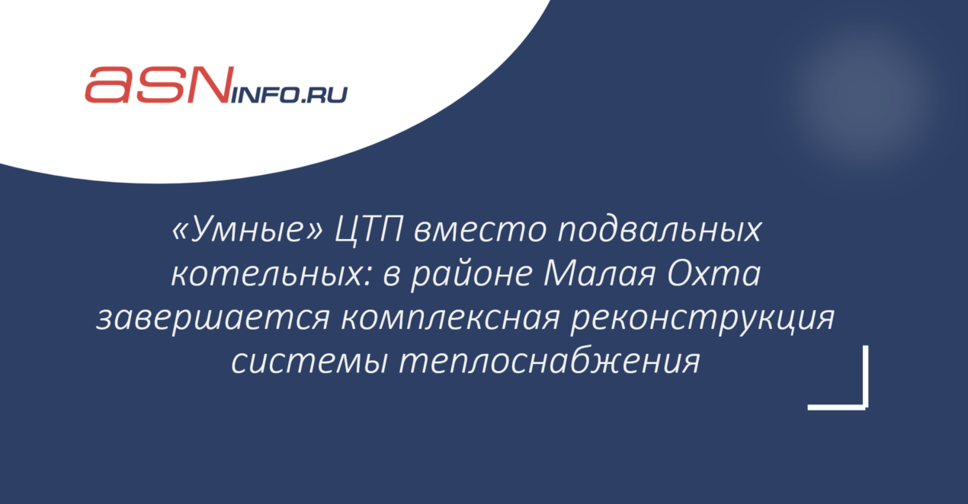 «Умные» ЦТП вместо подвальных котельных: в районе Малая Охта завершается комплексная реконструкция системы теплоснабжения