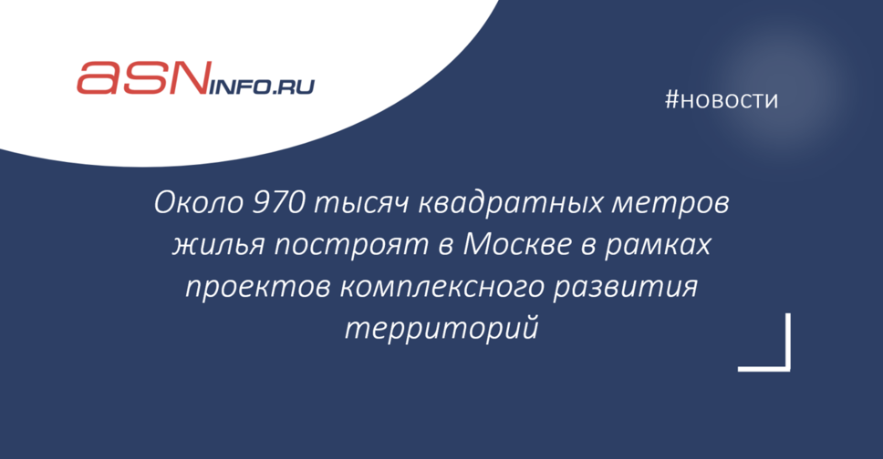 Около 970 тысяч квадратных метров жилья построят в Москве в рамках проектов комплексного развития территорий