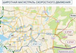 В Ленобласти должны быть реализованы пятый и шестой этапы ШМСД — речь идет о 15-ти километровом участке во Всеволожском районе. Там новая дорога через КАД пройдёт к трассе "Кола", а также дойдёт до автодороги "Петербург - Колтуши".