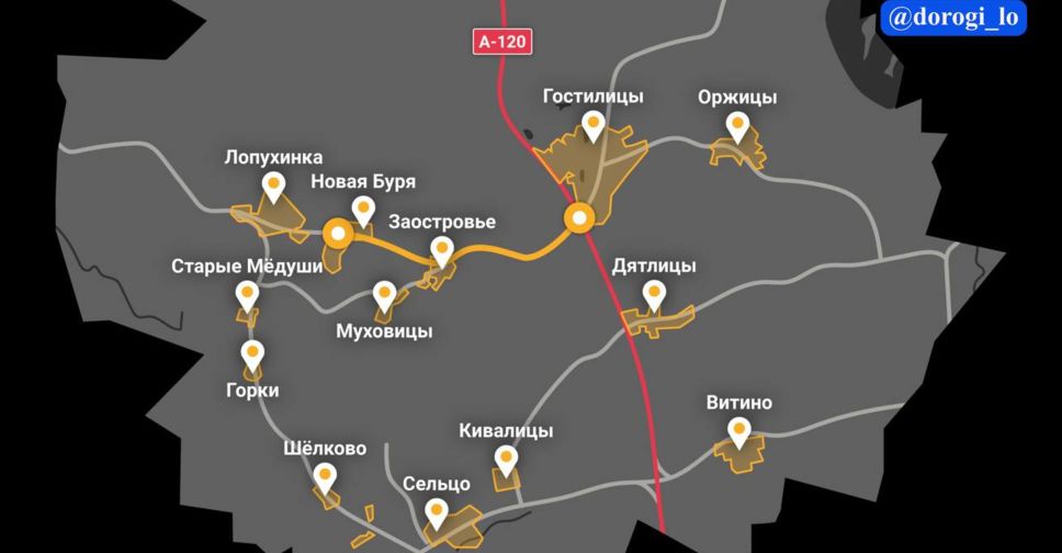 Да, это уставший участок от «Южного полукольца» в Гостилицах до Новой Бури. Техника пройдет через Заостровье и остановится около Лопухинки. Подробная схема ремонта выше. Начало в сентябре. Привет всем, кто писал по этому поводу. На фото — обновленная дорога внутри Гостилиц и сама деревня.