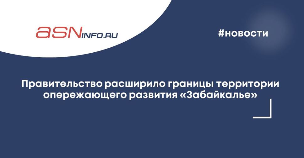 Границы территории опережающего развития (ТОР) «Забайкалье» на Дальнем Востоке будут расширены для запуска новых и развития уже реализуемых инвестиционных проектов. Постановление об этом подписал Председатель Правительства Михаил Мишустин.