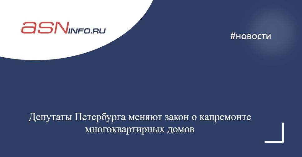 Депутаты петербургского парламента в первом чтении одобрили изменения в законопроекты «О жилищной политике Санкт-Петербурга» и «О капитальном ремонте общего имущества в многоквартирных домах». Инициативы в том числе предлагают исключить из перечня сведений, которые включаются в региональную программу Петербурга, информацию о годе последнего капитального ремонта или реконструкции здания.