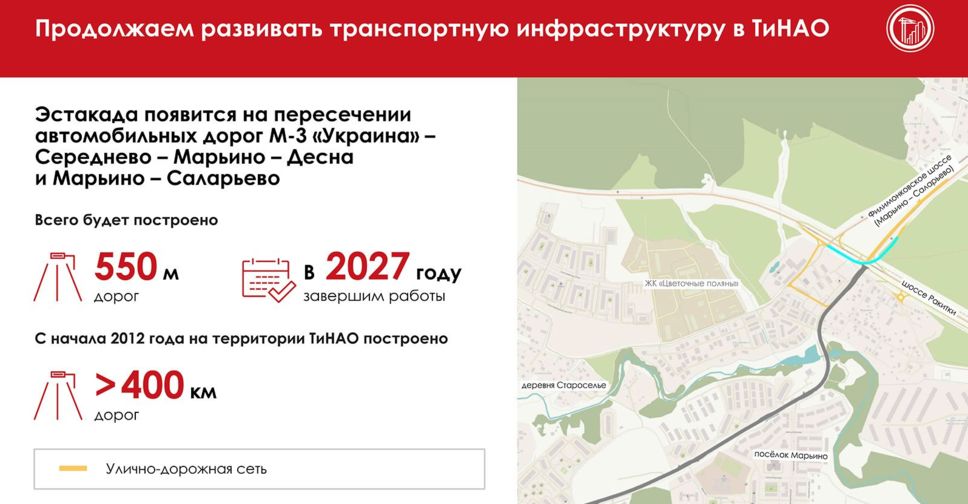 Новая эстакада появится на пересечении дорог М-3 «Украина» — Середнево — Марьино — Десна и Марьино — Саларьево.