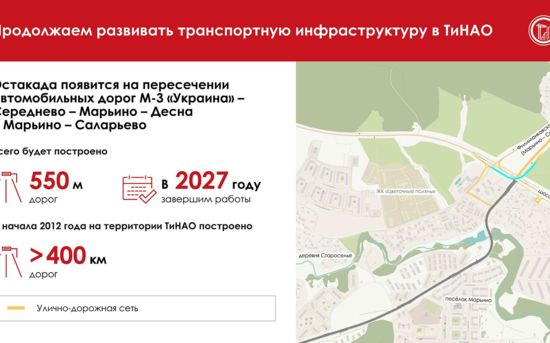«Эстакада снизит загруженность трасс в месте пересечения и сократит время в пути. Планируем также оборудовать здесь тротуары, новое освещение и ливневки. Благоустроим прилегающую территорию», — написал мэр Москвы.