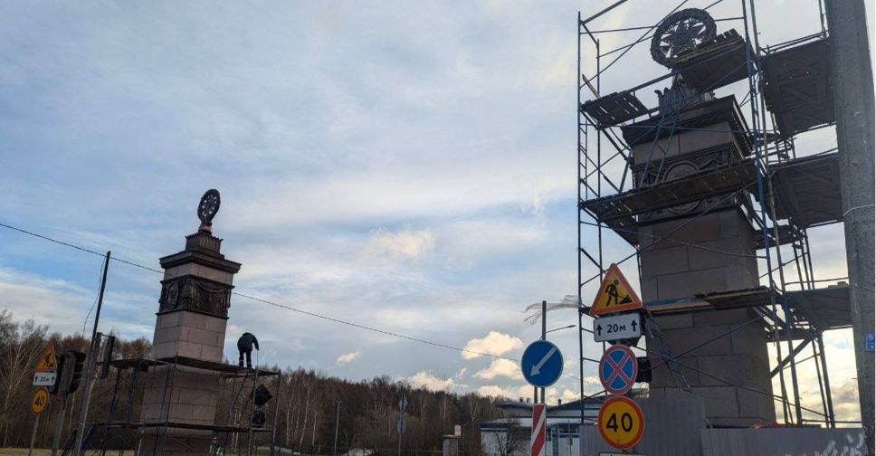 С Триумфальных пилонов на ул. Коммуны начали снимать строительные леса