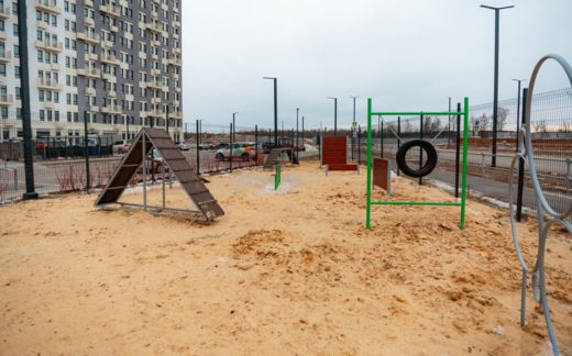«Пространство оснастили разнообразными снарядами для собак: балансирами, барьерами, горками и препятствиями для дрессировки. Площадку обустроили рядом с корпусом №7.1 и детским садом для 350 воспитанников», — отмечается в материале.