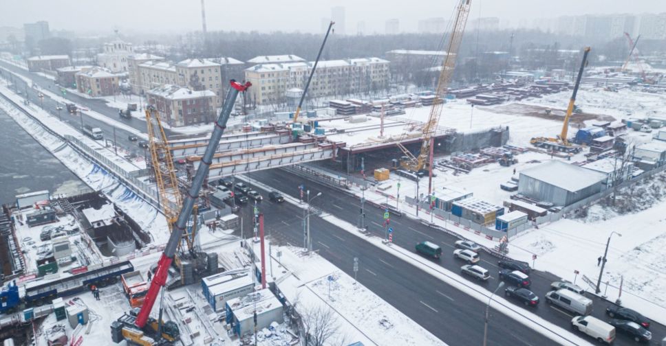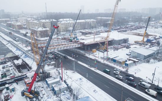 На строительстве Большого Смоленского моста за четыре ночи смонтирован пролет над Октябрьской набережной