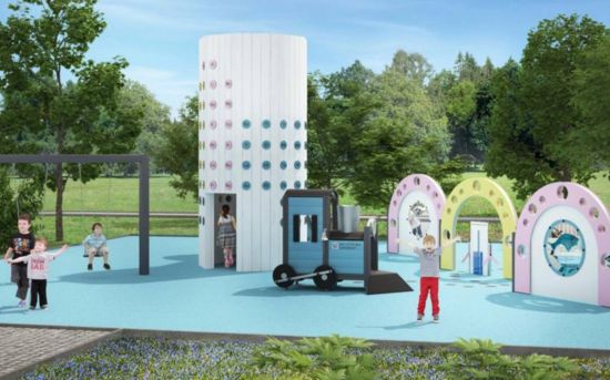 И, конечно, здесь будет то, что так любят дети: батуты, переговорные трубы, холмы с тоннелями и много качелей.