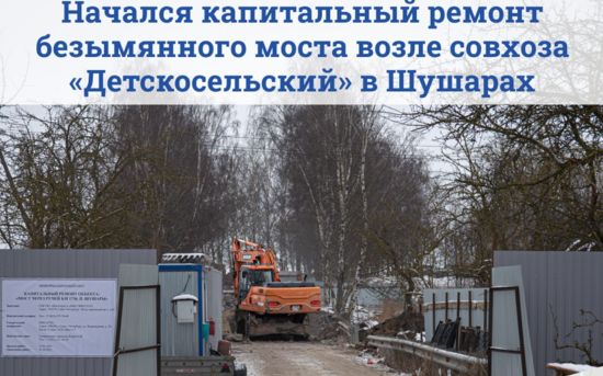 На аварийном мосту через безымянный ручей возле совхоза «Детскосельский» поселке Шушары начался капитальный ремонт.