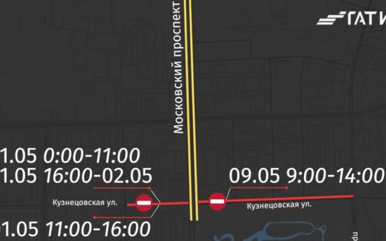 9 мая с 9:00 до 14:00 движение по Кузнецовской улице будет закрыто по направлению к проспекту Юрия Гагарина.