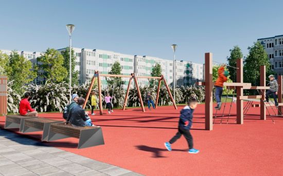 Проектом студии «Кремль» предусмотрено формирование сети пешеходных дорожек, в том числе кольцевой пешеходный маршрут. Вдоль них высадят декоративные кустарники и деревья. Будет смонтировано безопасное, комфортное покрытие на детской площадке, современное игровое оборудование, сформирована зона отдыха для взрослых с уличными качелями под навесом. Работы пройдут по нацпроекту «Инфраструктура для жизни».