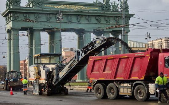 Сейчас на отрезке от Кузнецовской ул. до Лиговского пр. специалисты фрезеруют старое покрытие на проезжей части, после дорожники подрядной организации уложат здесь новый асфальт.