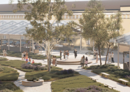 Хотя в целом центральный двор остаётся открытым, на проектных иллюстрациях показаны стеклянные навесы над зонами столиков. Общая площадь внутренних дворов составит 3,7 тыс. м2.