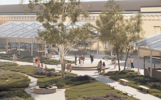 Хотя в целом центральный двор остаётся открытым, на проектных иллюстрациях показаны стеклянные навесы над зонами столиков. Общая площадь внутренних дворов составит 3,7 тыс. м2.