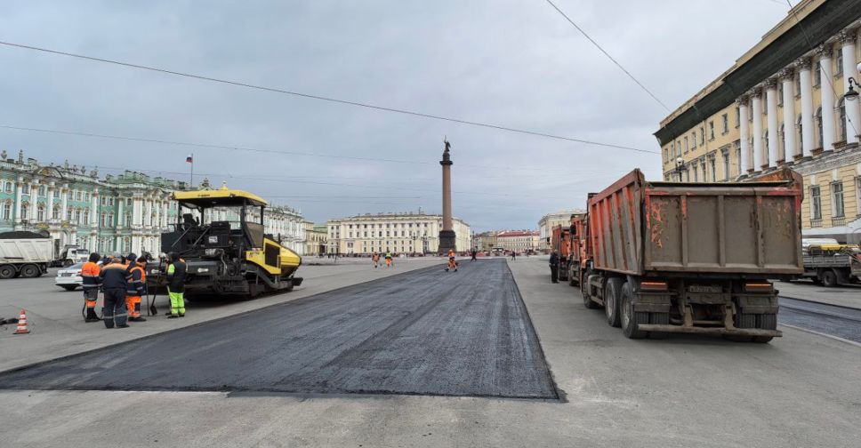 На Дворцовой площади идут масштабные работы по устранению дефектов покрытия, до конца недели планируется заменить более 8 тыс. кв. м.