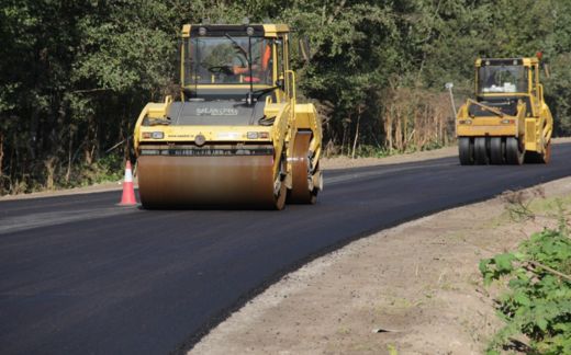 В ближайшее время начнётся устройство верхнего слоя асфальта. Дорожники также укрепят обочины, нанесут дорожную разметку и выполнят ремонт автобусных остановок.