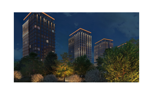 Благодаря такому решению формируется уникальная световая идентичность проекта, создается диалог с районом Хамовники и ансамблем спорткомплекса «Лужники», а также «золотистой короной» здания Президиума РАН на противоположном берегу Москвы-реки.