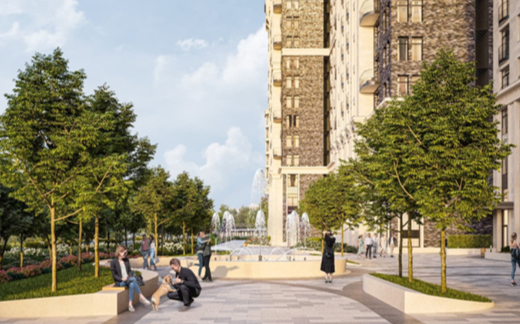Дом общей площадью 120 тыс. кв. м девелопер Sminex сдал в эксплуатацию в феврале. Благоустройство внутреннего двора охватило территорию в 1,7 га. Там разместили беседки, лавочки, качели, а также обустроили зоны барбекю.
