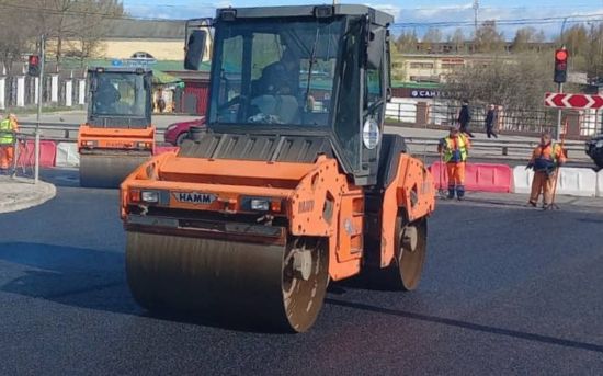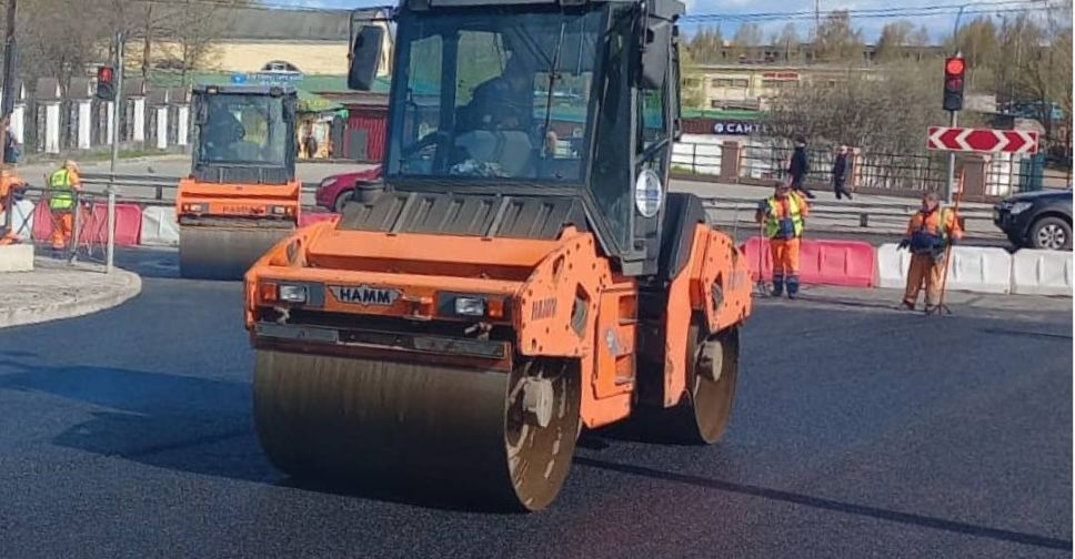 Дорожники приступили к укладке асфальта на Манежной улице в Ломоносове