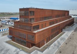 В марте строитель завершили возведение несущего каркаса филиала Большого театра на Октябрьском острове. Здание будет включать три функциональные зоны — общественное пространство, сценический комплекс и служебные помещения. Два зрительных зала обеспечат вместимость 950 и 300 мест соответственно.