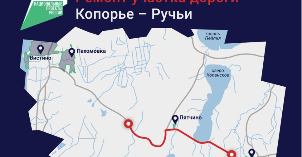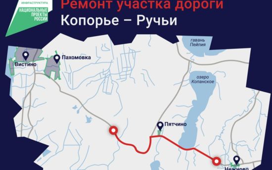 Работы будут проходить через Пятчино, Котельский заказник и пойдут в сторону Вистино. Обновление дороги проходит в рамках нацпроекта «Инфраструктура для жизни».