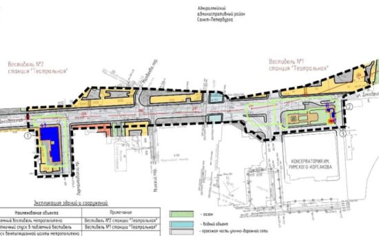 Согласно схеме, первый выход может появиться в Театральном сквере у консерватории имени Римского-Корсакова. Он обозначен на схеме как вестибюль №1. Вестибюль №2 по-прежнему планируют строить на месте дома быта, который расположен на Лермонтовском проспекте.