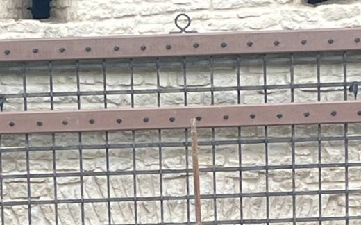 Герса закреплена на кованых крючьях. Установлена с целью музеефикации объекта.