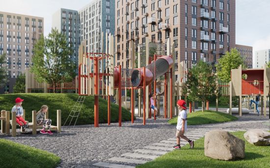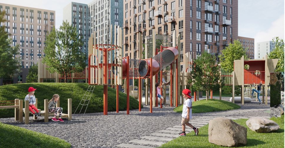 Для юных жителей всех возрастов предназначено «Поле поединка» – открытая зеленая лужайка, пространство для игры в волейбол и бадминтон, где также можно будет проводить пикники и запускать воздушных змеев.