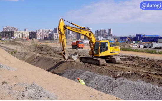 рабочие в рамках 1-го этапа строят новую дорогу от КАД, которая в будущем соединится с трассой СПб – Матокса