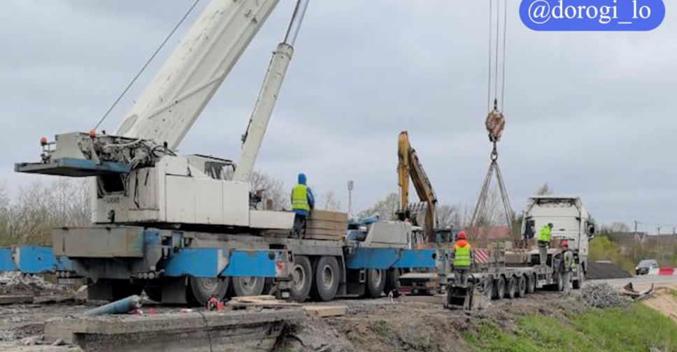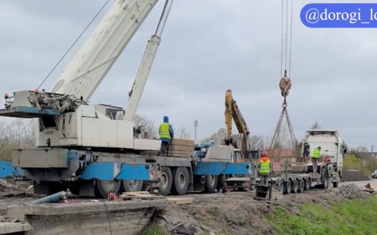 Под Гатчиной, на реке Ижора, где недавно движение было переведено в объезд, рабочие приступили к демонтажу старого моста.