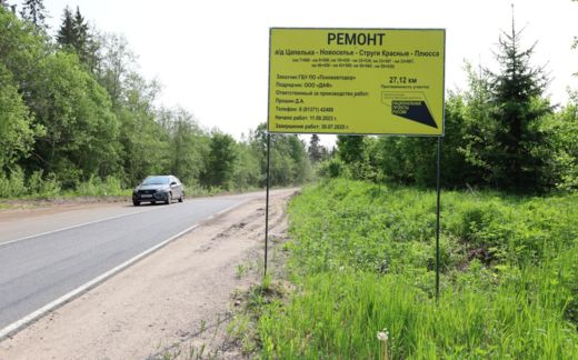 На трех участках дороги Цапелька – Новоселье – Струги Красные – Плюсса ведется ремонт по нацпроекту «Инфраструктура для жизни».