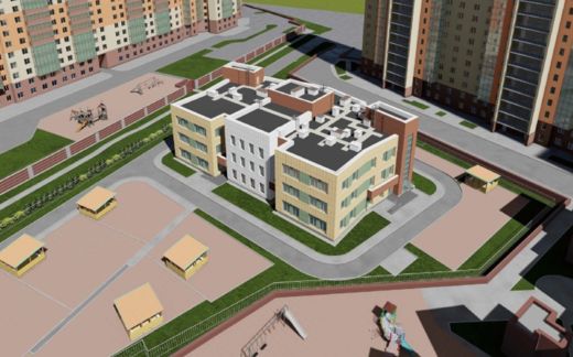 Детский сад рассчитан на 150 мест. В здании будут располагаться бассейн, музыкальный и физкультурный залы, помещения пищеблока и другие помещения.