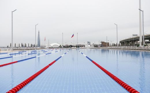 «Бассейн у Флагштока» возведен всего за 2,5 года на стационарном гидротехническом сооружении в Финском заливе. Благодаря этому он надежно защищен от волн и льда.
