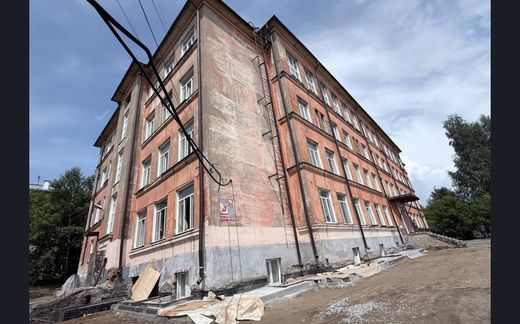 Ремонт четырехэтажного здания с подвальным помещением осуществляется в 2024-2025 годах в рамках реализации мероприятий по модернизации школьных систем образования, вошедших с 2025 года в структуру федерального проекта «Все лучшее детям» национального проекта «Молодежь и дети». На данный момент ремонтные работы выполнены на 70%. За счет средств местного бюджета также запланировано устройство асфальтобетонного покрытия прилегающей к зданию территории, спортивной площадки и площадки для сдачи норм ГТО.