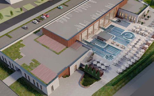 В здании также планируется оборудовать зону для релаксации, оздоровления и отдыха, а также блок массажных кабинетов, саун с купелью, кафе.