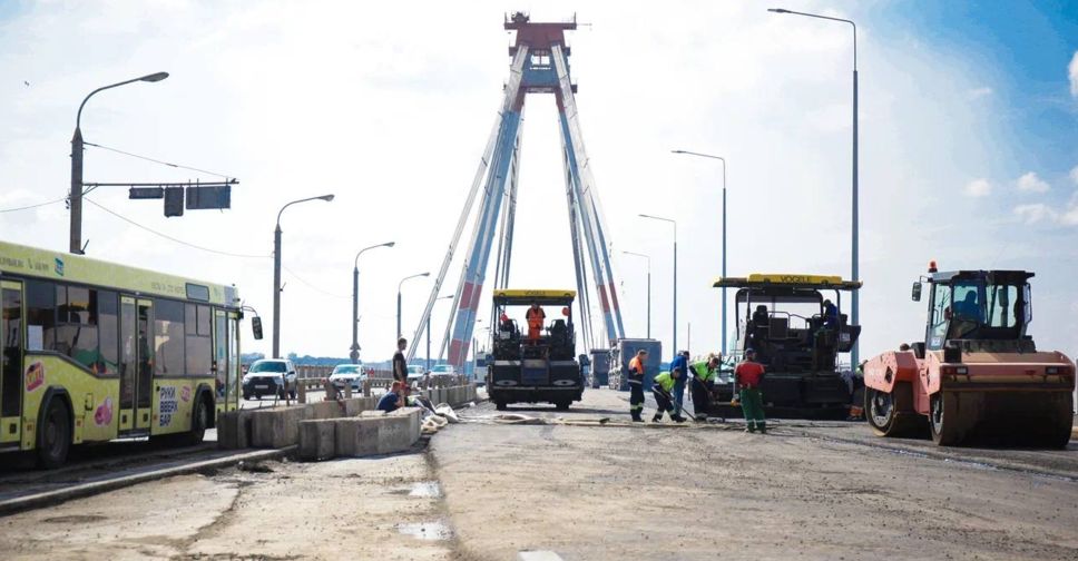 Подрядчик продолжает укладку асфальта на Октябрьском мосту в Череповце
