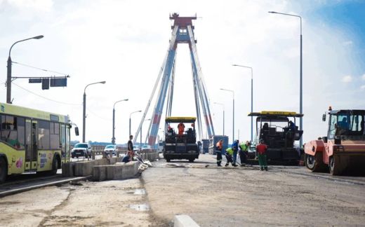 Нижний слой асфальта уже готов на всем протяжении мостового перехода.