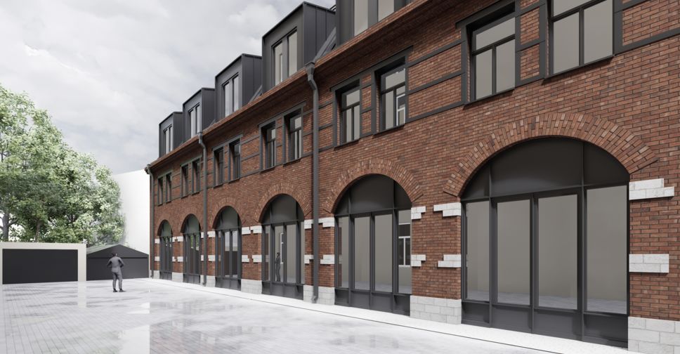 В трехэтажном здании предполагается размещение коммерческих помещений. Проектом предусматривается локальное изменение фасадов (раскрытие, замена и устройство оконных и дверных проемов, ворот), переоборудование чердачного пространства в мансардный этаж.