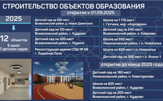 До конца 2025 года в Ленобласти откроется 12 новых объектов образования, причём 9 из них распахнут двери перед учениками уже к 1 сентября.
