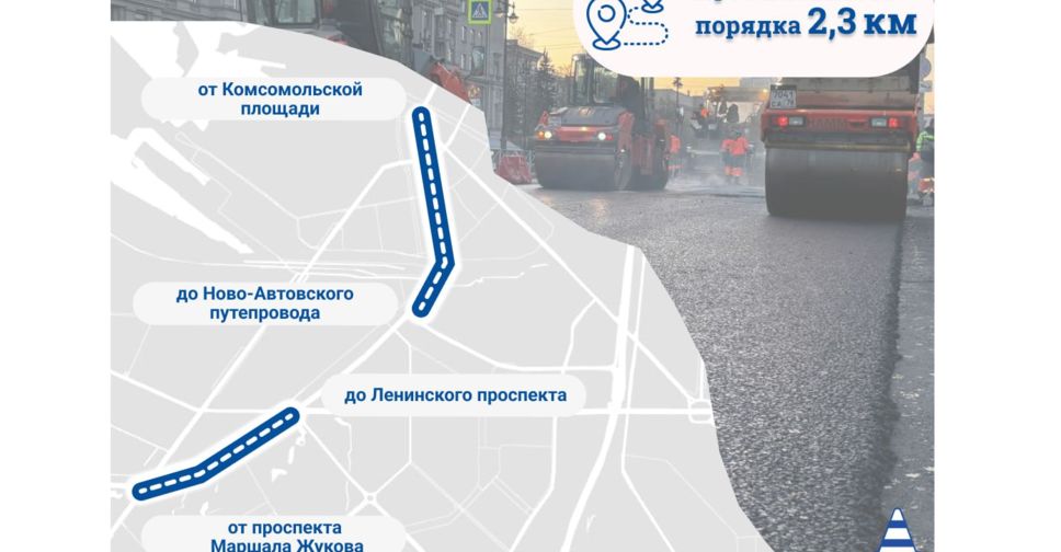 Работы пройдут на участках от Комсомольской площади до Ново-Автовского путепровода и от Ленинского проспекта до проспекта Маршала Жукова общей протяженностью порядка 2,3 км.