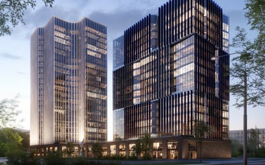 Дизайн-концепция светового решения направлена на создание гармоничного образа бизнес-центра. Его разноэтажные башни напоминают скульптуры из стекла и металла. Благодаря освещению алюминиевых ламелей создается акцент на архитектурных особенностях.