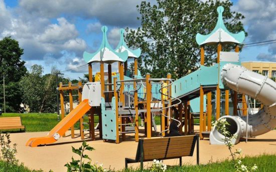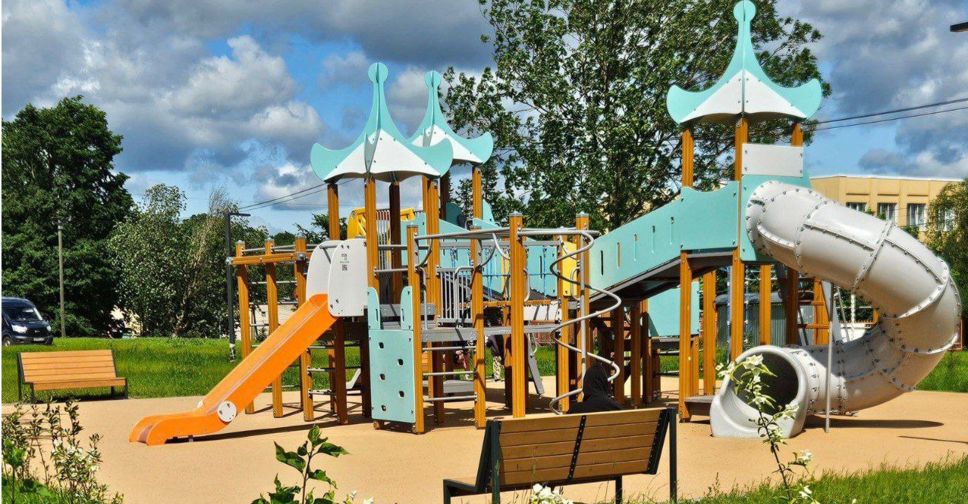 Детская площадка с башнями, гимнастические комплексы, ели, кизильник и чубушник, удобные пешеходные дорожки — в Оржицах по нацпроекту "Инфраструктура для жизни" благоустроена новая общественная территория.