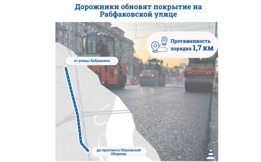 В связи с производством работ по ремонту дорожного покрытия с 21 июля по 5 августа 2025 года ограничивается движение транспорта по Рабфаковской улице от улицы Бабушкина до проспекта Обуховской Обороны.