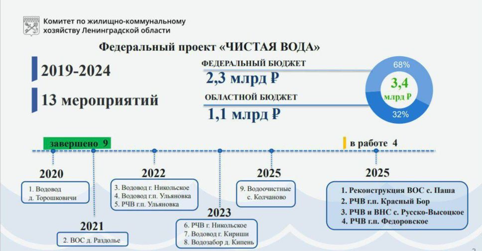 Готовность более 90% на водонасосных станциях в Русско-Высоцком, Федоровском и Красном Бору. На особый контроль губернатор поставил работы в селе Паша, чтобы объект был сдан в 2025 году.