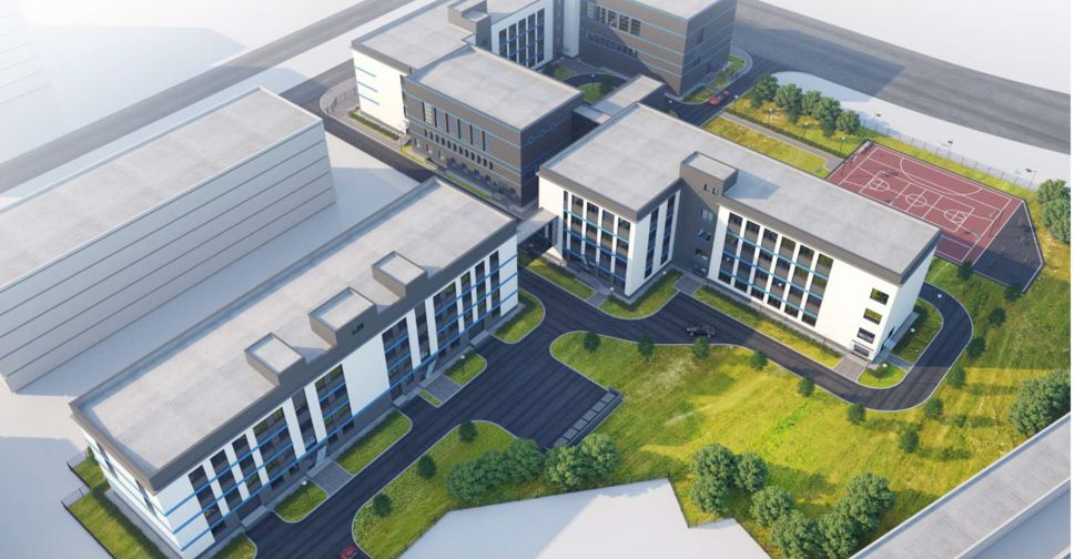 Предполагаемая вместимость - 500 учащихся и 70 сотрудников. В корпусах разместятся учебные классы, спортивный зал с бассейном, зрительный зал, столовая. В новом здании будет оборудована библиотека с книгохранилищем и читальным залом, разместятся медицинские кабинеты, учебные классы, лаборантские и другие помещения. В одном из корпусов планируются производственные мастерские.